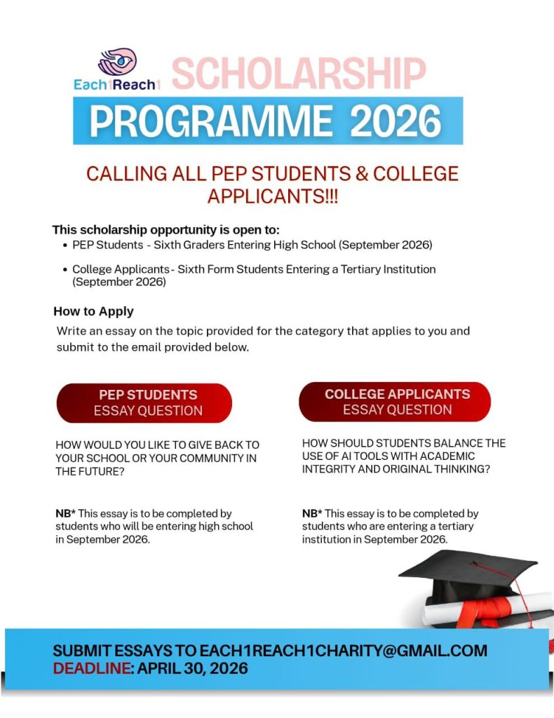 It’s official! The 2026 edition of our annual Each One Reach One Foundation essay competition is now open. Please share with students who are doing PEP, and those who are incoming tertiary students.